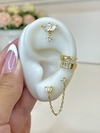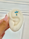 Argollas Plata 925 con chapado de oro de 4 micrones e incrustaciones en color celeste. La durabilidad del color dorado dependerá del cuidado que se le dé a la joya.